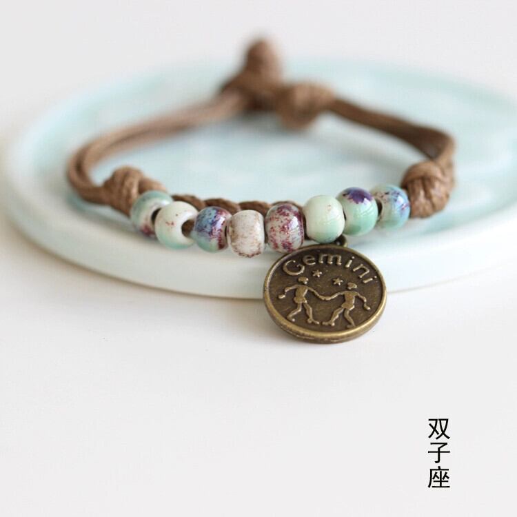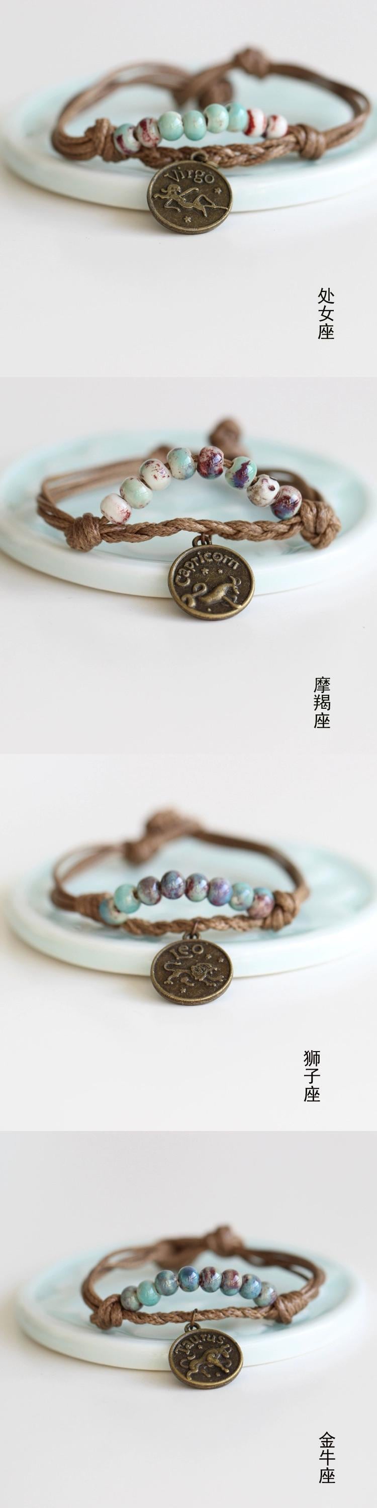 手作りのレトロなカップル星座ブレスレット、エストスタイルの甘いセラミック多目的シンプルブレスレット学生ブレスレットアクセサリー 大人ガーリー スウィート キュート カジュアル shipin39848496504