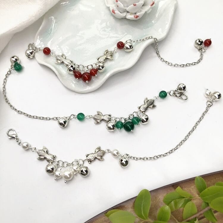 Chasing Fish - 手作りレトロ瑪瑙ベルブレスレットエスニックスタイル文学的で新鮮な女性パールアンクレットアクセサリー 真珠 shipin58983449603