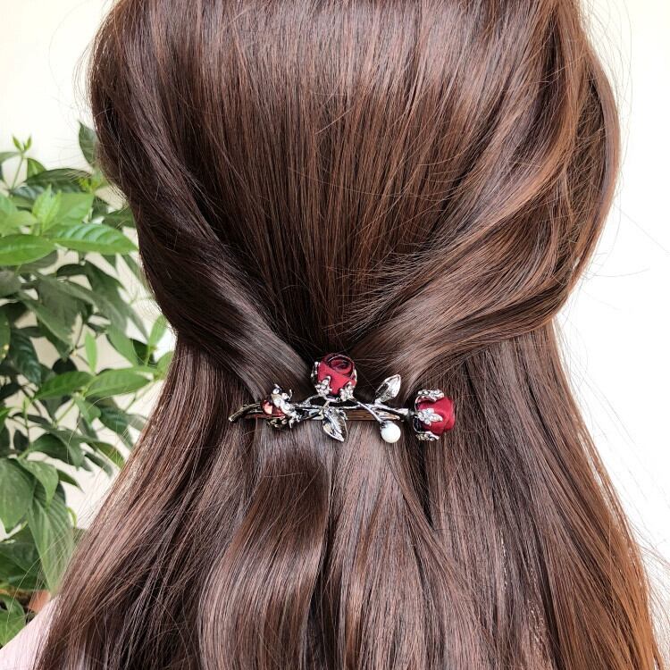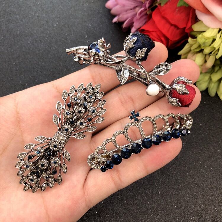 ファッションレトロローズフラワーダイヤモンドクラウンスプリングクリップヘアピンヘアピン大人の一言クリップ多目的ヘアアクセサリー 春物 フラワーデザイン shipin95215051234