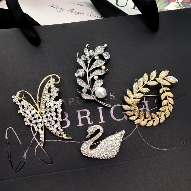 高級気質輝くダイヤモンドブローチ、ファッショナブルなレディースコートセータークリスタルブローチ、多用途コサージュアクセサリー shipin5870263926