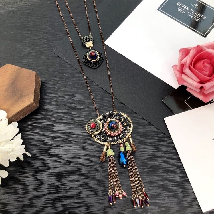 東欧スタイルの手作りレトロテルロングネックレスライト高級シンプルなセーターチェーンクリスタルペンダント多用途なeign tradeアクセサリー レース ヨーロピアン shipin67812384619