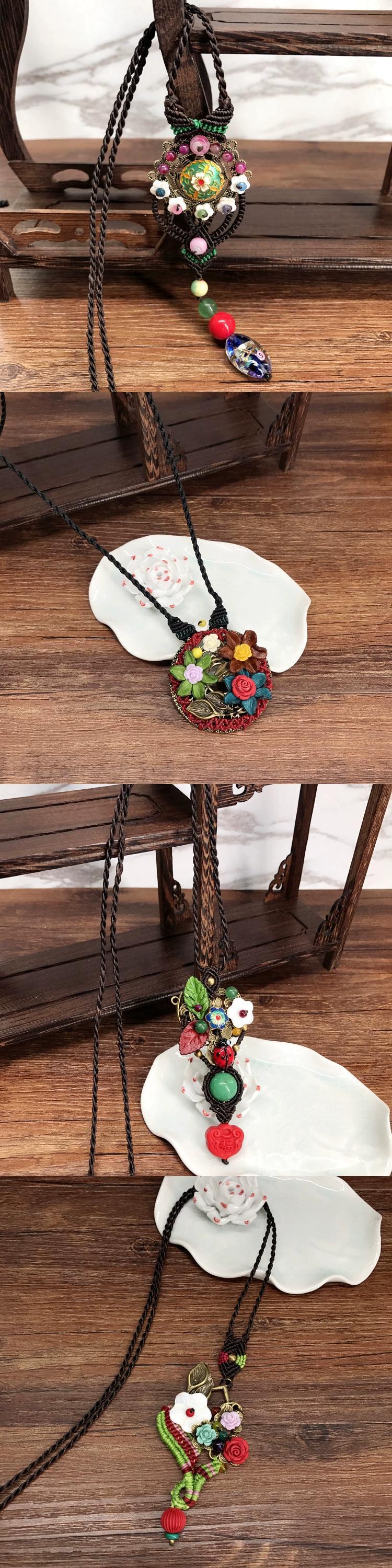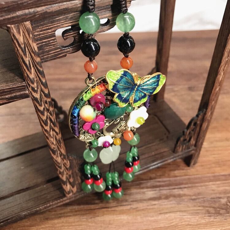 手作りのレトロ瑪瑙ネックレス、エスニックスタイルの女性の多用途なロングスタイルの翡翠ペンダントセーターチェーンアクセサリー レース ジェード ヒスイ shipin99612785296