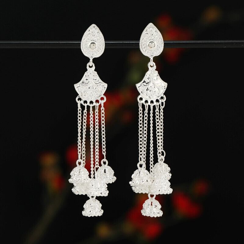 レトロなエスニックスタイルのイヤリング、長い鳥かごの鐘、電話イヤリング、ボヘミアン気質、パーソナライズされたイヤリング女性 ロング 指輪 shipin55268581403
