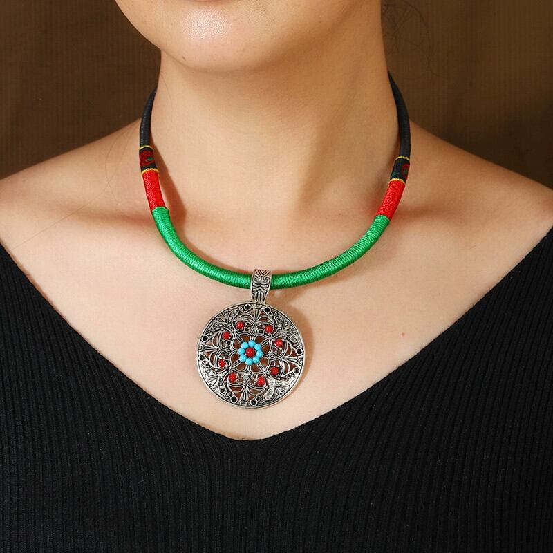 編組エスニックスタイル襟電話ショートネックレスレトロ雲南ミャオ族鎖骨ネックレスステージ permance アクセサリー女性 レース shipin35247315377