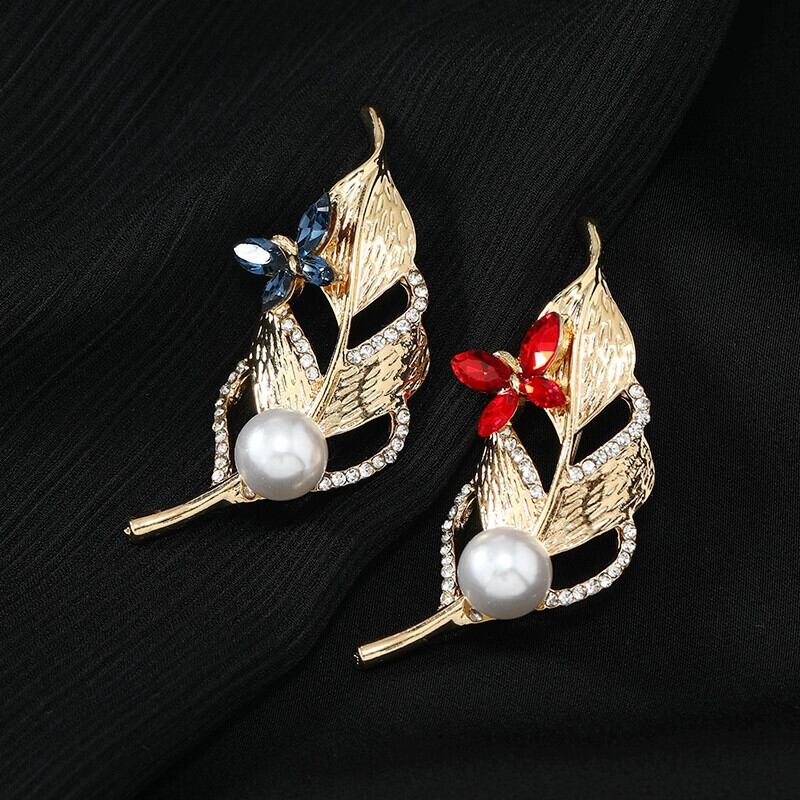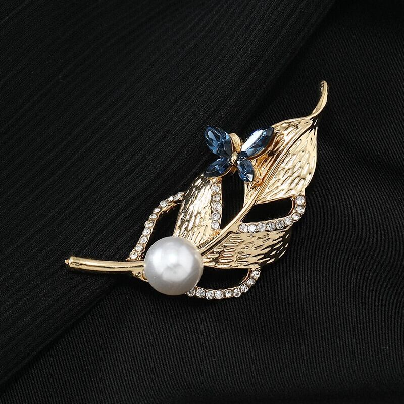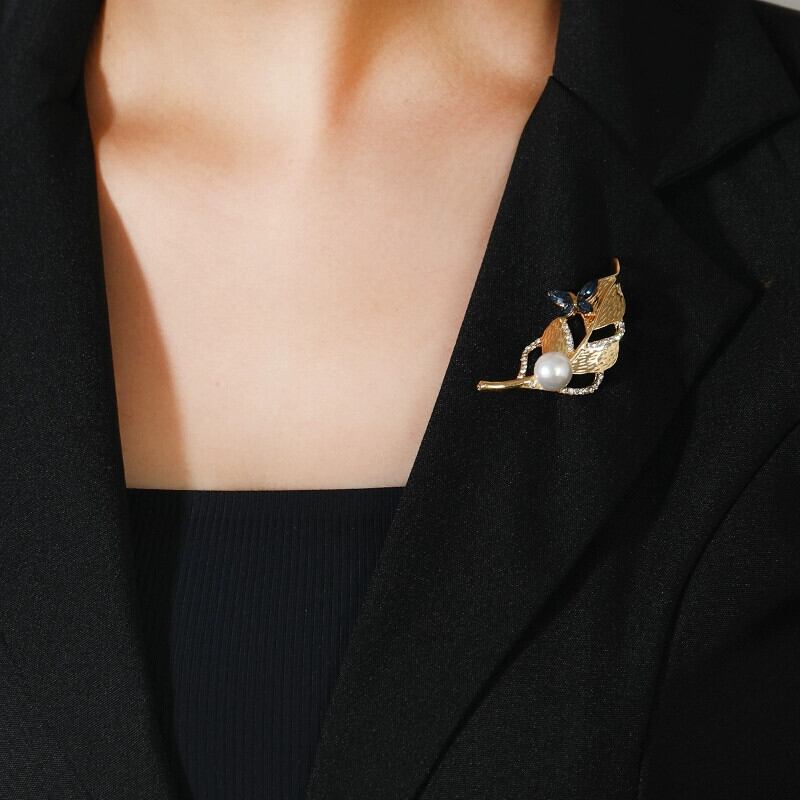 葉蝶パールブローチニッチ気質ハイエンドクリスタルピンスーツ服コサージュアクセサリー女性 真珠 shipin96166733824
