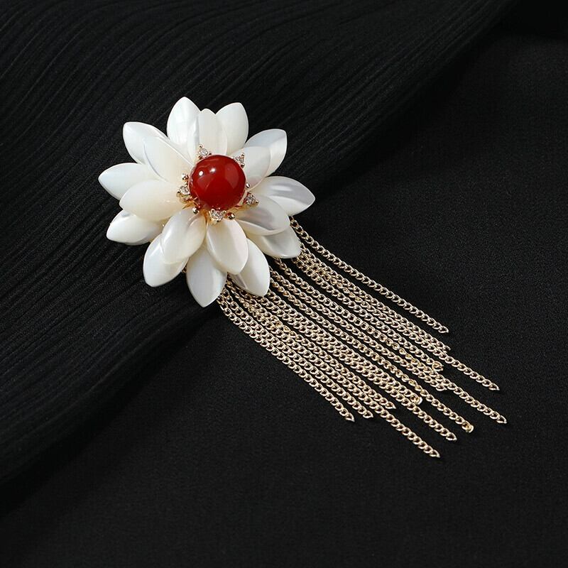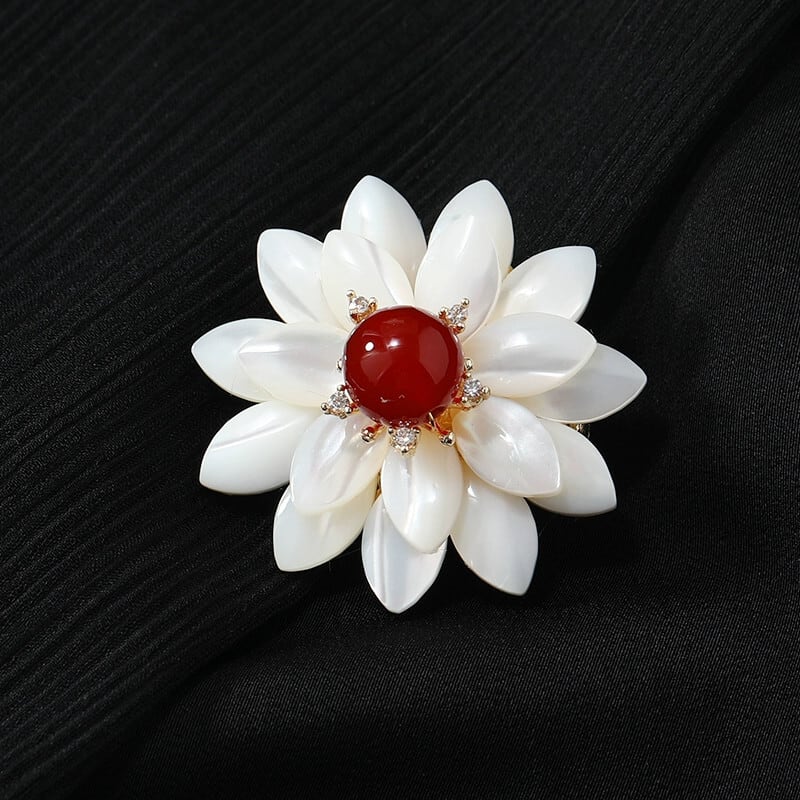 椿赤瑪瑙ブローチニッチデザインマザーオブパールコサージュハイエンド高級テルピンコートアクセサリー女性 レッド 真珠 shipin68544276237