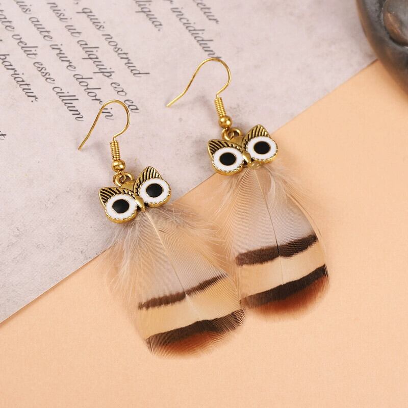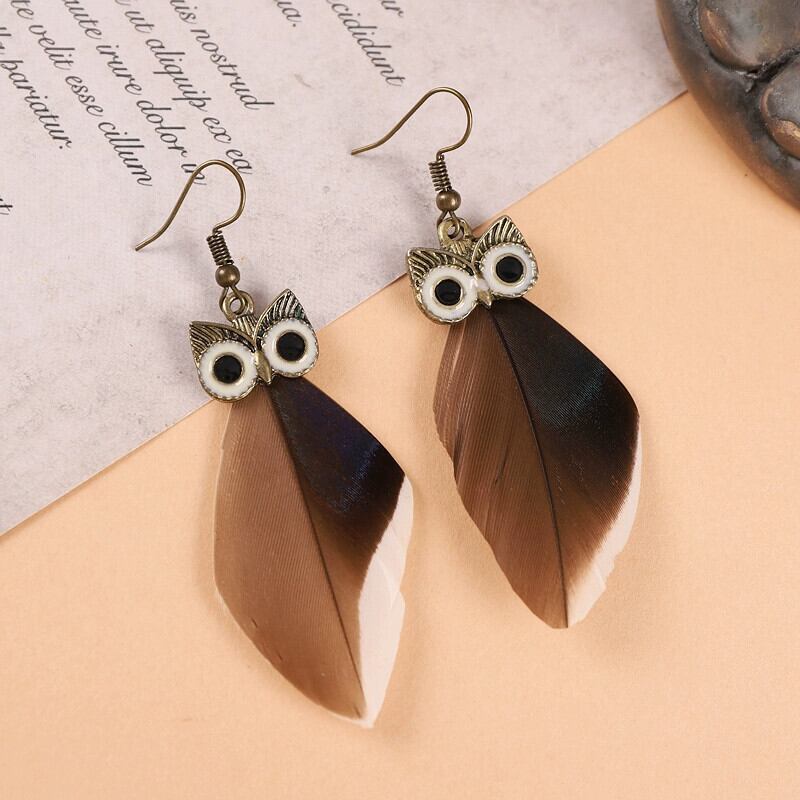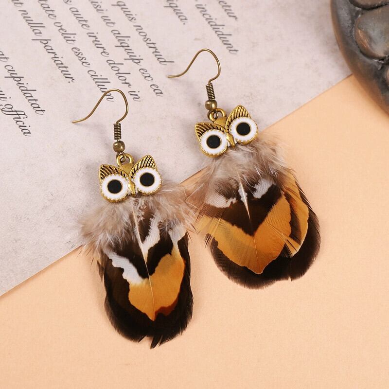 レトロなフクロウの羽のイヤリングニッチデザイン創造的な個性のイヤリングエスニックスタイルの孔雀のイヤリングの女性 指輪 shipin73598103228